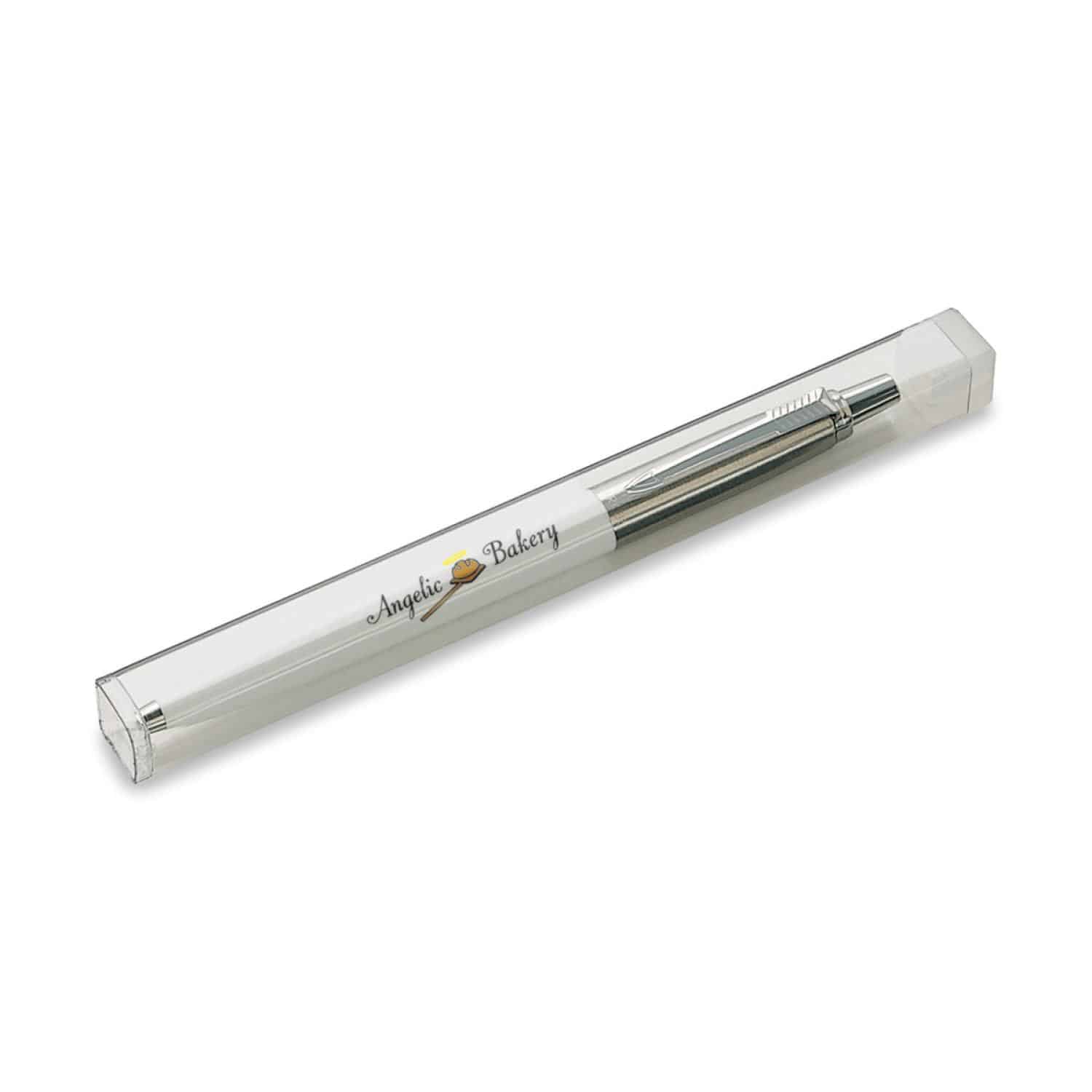 The Parker(R) Jotter Original Ballpoint Pen pairs clean lines with a timeless design, making it the perfect everyday writing companion. With a durable ballpoint tip, smooth black ink, and the signature arrow clip, Jotter balances style and function. Packaged in standard tube packaging with upgraded gift box options available. Complies with Prop 65. 0.5″ W x 5″ L